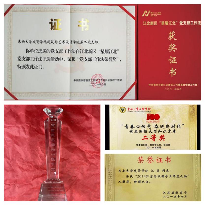 2019年本支部荣获bat365中文官方网站先进基层党组织称号,2020年支部书记江晶荣获“全国民办高校优秀辅导”称号,2021年获评南京市江北新区“星耀江北”党支部工作法,荣获bat365中文官方网站最佳党日活动评比“二等奖”两次,bat365中文官方网站最佳党日活动“一等奖”三次、“二等奖”一次。支部党员荣获国际级奖项1人次,国家级奖项47 人次,省市区级奖项15人次,校级奖项96人次,奖学金26人次,学生党员的平均绩点为3.82,最高绩点为4.27。