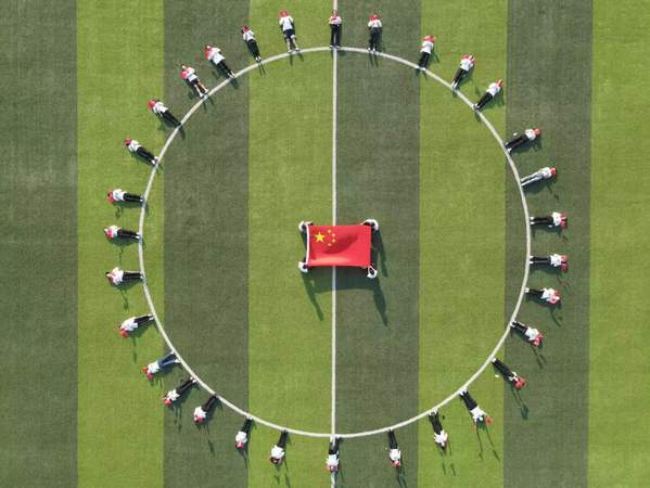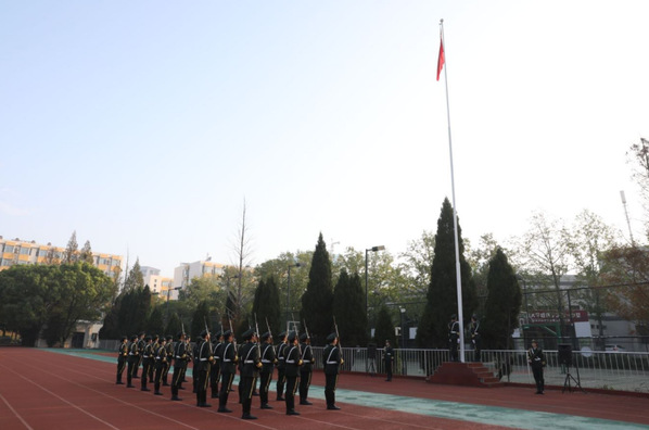 10月1日清晨,由校团委主办的“国旗下的告白”升国旗仪式在学校田径场举行。英姿飒爽的国旗护卫队迎着朝阳,满怀热情,以整齐划一、铿锵有力的步伐护送国旗进场,当雄壮有力的《义勇军进行曲》响彻校园时,鲜艳的五星红旗冉冉升起,迎风飘扬,全场弥漫着庄严肃穆的气息,在场的每一个人向国旗行注目礼,表达对祖国无限热爱和崇高敬意。