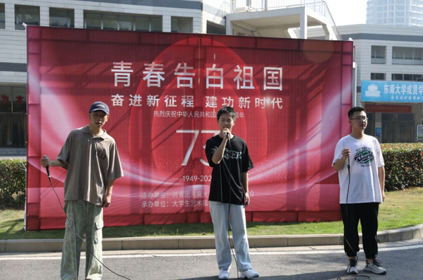 10月1日至2日,大学生艺术指导中心在校内开展了“青春告白祖国”主题巡演活动,巡演共包含歌曲《今天是你的生日》《破浪》《如愿》、舞蹈《灯火里的中国》《青春有你》以及器乐表演《浏阳河》等6个节目,创新思想政治教育模式,组织和激励广大青年用青春、用热力、用行动向祖国表白,展现了当代青年的赤子之情、强国之志、报国之行,此外巡演在现场师生中引发了强烈反响。