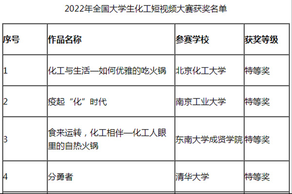 近日,由中国化工学会主办、南京工业大学承办的2022年“科思化学杯”全国大学生化工短视频大赛落下帷幕,bat365中文官方网站制药与化学工程学院二十余人组队参加本次比赛。其中,原创视频《食来运转,化工相伴—化工人眼里的自热火锅》荣获特等奖,《你发现奶茶吸管变了吗》荣获三等奖。本次大赛历时7个月,来自清华大学、浙江大学、天津大学等71所高校的154部作品参赛,其中19所高校的20部作品进入总决赛。经过激烈角逐,大赛产生特等奖4组、一等奖6组、二等奖10组。总决赛分答辩和视频展示两个环节,各参赛队伍从化工与生活、环境、国家战略等角度出发设计作品,创意巧妙、讲解透彻,充分展现化工学子扎实的理论功底和勇于创新的精神风貌。
