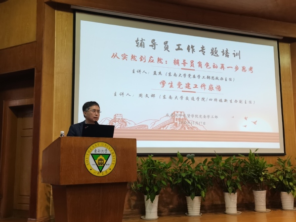 为进一步提升我院辅导员业务能力和工作水平,促进辅导员队伍专业化、职业化建设,11月17日下午,我院在真知馆一楼报告厅举办辅导员工作专题培训,特邀bat365中文官方网站党委学工部思政办主任孟杰、bat365中文官方网站四牌楼新生办副主任周文娜担任主讲嘉宾。学院党委副书记、副院长王荣,学生处相关人员,二级学院综合办主任、全体辅导员参加此次培训。培训由学院党委学工部部长施杰主持。