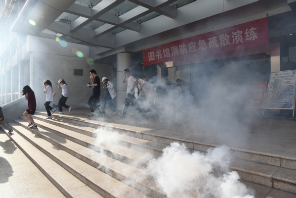 4月17日,消防应急疏散演练图书馆专场活动开展。随着馆内响起的警报声,消防卷帘门等消防设施启动,工作人员迅速指导、组织在馆读者用湿毛巾、手帕等捂住口鼻有序通过全馆各安全出口进行疏散。到达馆外指定安全位置后,工作人员对疏散人员的身体及心理状态进行了询问和关心。整个演练过程真实模拟了图书馆发生紧急情况后的应急疏散流程,测试了图书馆相关设备的运行状态,检验了工作人员应急能力的掌握情况。疏散演练前,保卫处对图书馆工作人员进行了灭火器和消火栓的使用方法培训。本次演练由保卫处联合图书馆共同举办,对进一步提高在馆师生的应急反应能力、动手实践能力、自救互救能力具有很强的针对性和实效性。