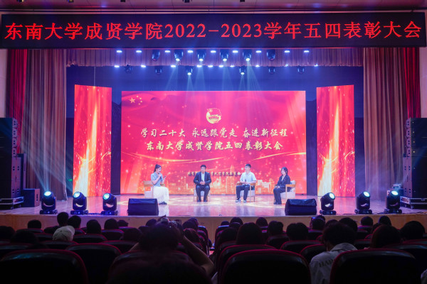 5月5日晚,“学习二十大,永远跟党走,奋进新征程”学院2022-2023学年五四表彰大会在综合楼报告厅举行。党委副书记、副院长、纪委书记王荣,党委学工部部长、学生处处长施杰,团委书记、党委学工部副部长潘明烽,后勤管理处副处长丁秀山,20届校友优秀毕业生、六合区雄州街道刘昊,分团委书记、辅导员老师及学生干部代表约600人参加了大会。