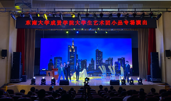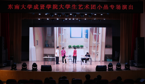 5月19日晚,由校团委、学生处、保卫处主办大学生艺术指导中心话剧团演出的反诈教育小品专场演出在综合楼报告厅举行。团委书记、学生处副处长潘明烽,泰山街道辖区派出所民警陆建斌、保卫处老师及全校600余名学生生共同观看了此次演出。