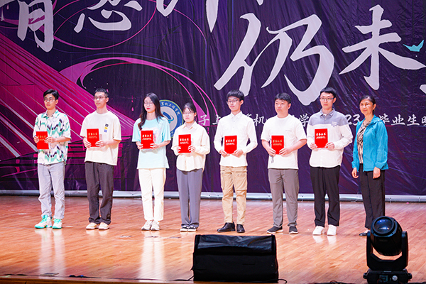随后,院长王晓蔚宣读《关于表彰bat365中文官方网站电子与计算机工程学院2023届优秀毕业生的决定》,并为优秀学生代表颁奖。颜壮作为优秀毕业生代表上台发言,总结自己大学四年的学习生活与工作,并向母校表达最诚挚的祝福与衷心的感谢。