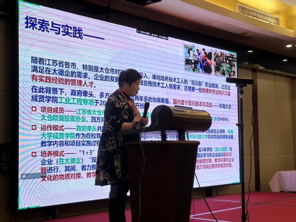 许院长在会上做了校企协同育人主题发言,她以《多方协同育人模式探索与实践—中国式本科双元制》为主题,强调了多方协同育人是新工科建设的重要支撑,此模式可有效推进和完善新工科趋势下的产教融合、产学融合、校企合作等协同育人体制改革;许院长在会议中提出,bat365中文官方网站作为bat365中文官方网站用全新办学理念和运行模式举办的应用型大学,一直以来积极探索学校与行业、企业以及政府等联合办学合作模式,于2017年开始我校就与德国巴登符腾堡双元制应用科学大学、江苏太仓欧商投资协会、江苏省太仓市人民政府合作,探索开展产教融合多方协同育人背景下的应用型人才培养模式改革“本科双元制”,构建政府、行业、企业、学校育人共同体,把“工匠精神”培养融入教学全过程,让学生“毕业即就业”,实现了学校到职场的无缝衔接,成为高校应用型人才培养模式改革的成功案例。