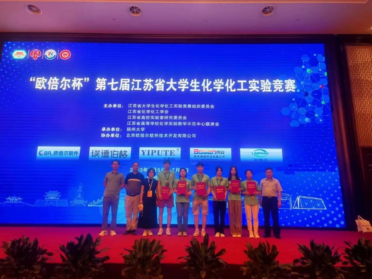 7月5日-7日,由江苏省大学生化学化工实验竞赛组织委员会、江苏省化学化工学会、江苏省高校实验室研究委员会、江苏省高等学校化学实验教学示范中心联席会主办,扬州大学承办的2023年“欧倍尔杯”第七届江苏省大学生化学化工实验竞赛在扬州大学圆满落幕。我校制药与化学工程学院2020级6名学生与来自全省包括bat365中文官方网站、南京大学等37所高校,67支队伍的200余名选手参加笔试和实验操作比赛。经过两天的紧张角逐,参赛学生精心作答、细心操作,展现了扎实的理论功底和较高的实践操作技能,在所有选手中脱颖而出,全部获奖。其中,王芸珍(化工组)获一等奖;王茜(化工组)、刘丹(化工组)、兰序婷(化学组)和卢隆基(化学组)分获二等奖;周根运(化学组)获三等奖,总成绩在参赛高校中名列前茅。