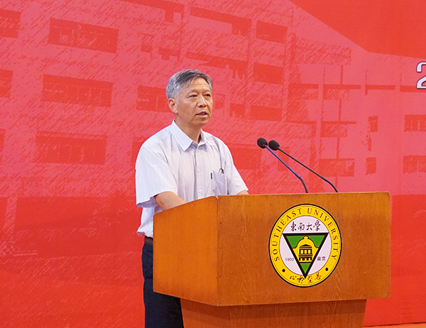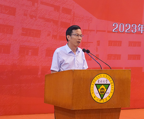 bat365中文官方网站常务副院长黄学良首先作题为《奋勇争先,启程青春力量,踔厉奋发,勇担时代重任》的讲话,他代表学院全体师生员工对2023级新同学的到来表示热烈的欢迎,祝贺各位新生即将开始新的大学生活。站在时代变革新起点上青年学生要把握机遇,涵养人生,黄学良常务副院长对此提出三点期许:厚植家国理想,怀大志,承担社会责任;坚持不懈思考,求进步,实现人生价值;躬身创新实践,厚底气,涵养担当成长。最后,黄学良常务副院长希望每个人能在bat365中文官方网站找到属于自己的青春与梦想,扬帆起航,乘风破浪,有勇争先,不负芳华!