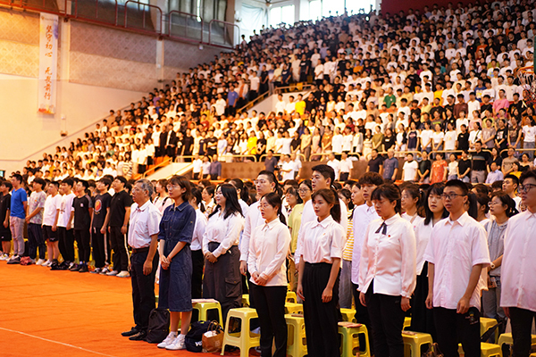 高昂雄壮的国歌拉开了开学典礼的序幕。