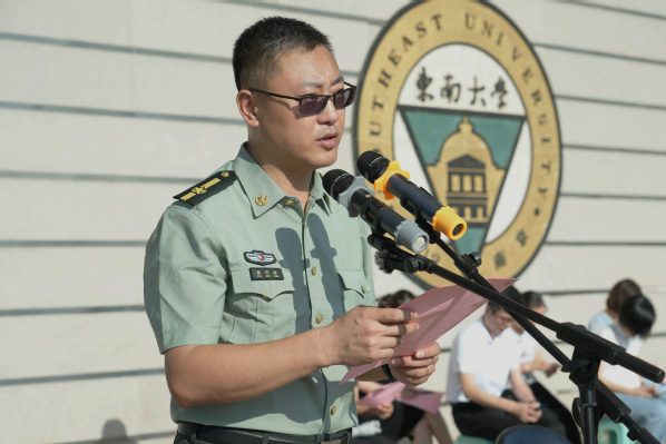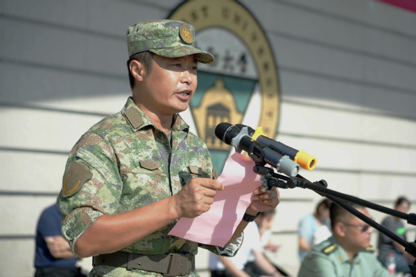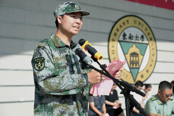 大会中,军训团团长隋军发表讲话。他首先对我校新生的表现与军训成果表示认可,他表示通过军训,强化了大学生的国防知识教育,提升了组织纪律观念,增强了军事技能,希望同学们把军训成果转化为认真学习的强大精神动力,为迈向新的人生高峰而拼搏奋斗。