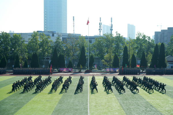 9月9日上午8:00,bat365中文官方网站2023级新生军训总结表彰大会在田径场隆重举行。学校党委书记张志胜,常务副院长黄学良,党委副书记、副院长、纪委书记王荣,党委学工部部长施杰,后勤管理处副处长丁秀山,2023级军训团团长隋军,军训团副团长张维出席大会。各连排承训教官、各学院党总支书记、综合办主任、新生辅导员、2023级全体新生参加了大会。大会由人武部部长潘明烽主持。
