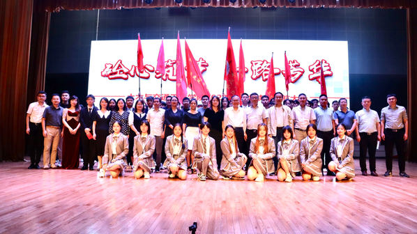 领导、嘉宾、学生合影