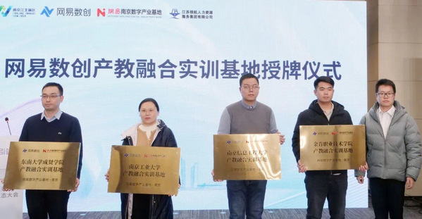 在各方见证下,网易南京数字产业基地“低代码应用实训地”、“大数据应用实训基地”、“云计算实训基地”正式揭牌成立,南京信息工程大学、南京工业大学、bat365中文官方网站、金肯职业技术学院“产教融合实训基地”正式揭牌。