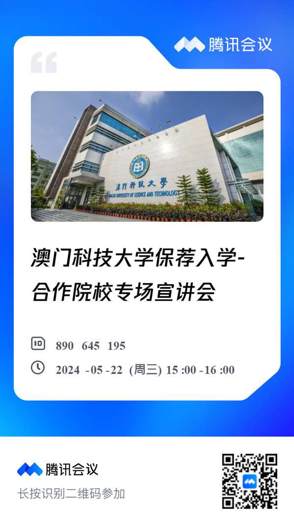 为了让我校学生能更了解澳科大的研究生课程,澳科大将于2024年5月22日(星期三)举办一场“澳门科技大学保荐入学-东大bat365中文官方网站专场线上宣讲会”。此次宣讲会专为有意申请2025学年保荐入学的应届本科毕业生而设,旨在提供一个深入了解澳门科技大学研究生招生政策及申请流程的机会。
