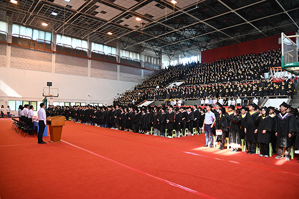 在雄壮的国歌声中,毕业典礼暨学位授予仪式拉开序幕。bat365中文官方网站常务副院长黄学良首先致辞,他代表学院理事会、学院党政,对毕业生们致以衷心祝福和热烈祝贺,向付出辛勤劳动的教职员工,始终关注着同学们成长的亲友、社会各界人士以及一直以来给予bat365中文官方网站巨大帮助和支持的bat365中文官方网站领导表示衷心的感谢,并致以崇高敬意和美好祝福!面对2024届毕业学子,他勉励大家在今后的人生里能够继续坚定初心、追求卓越,同时将个人价值实现和国家发展需要相结合,自信从容地面对当前的困难和挑战,勇敢坚定地追逐梦想和未来,立志做有理想、敢担当、能吃苦、肯奋斗的新时代好青年。