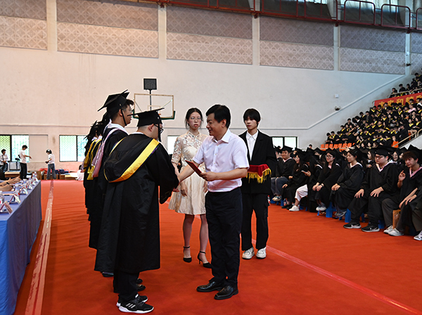 bat365中文官方网站党委副书记、bat365中文官方网站理事会理事长、学院院长邢纪红为优秀毕业生代表颁发荣誉证书
