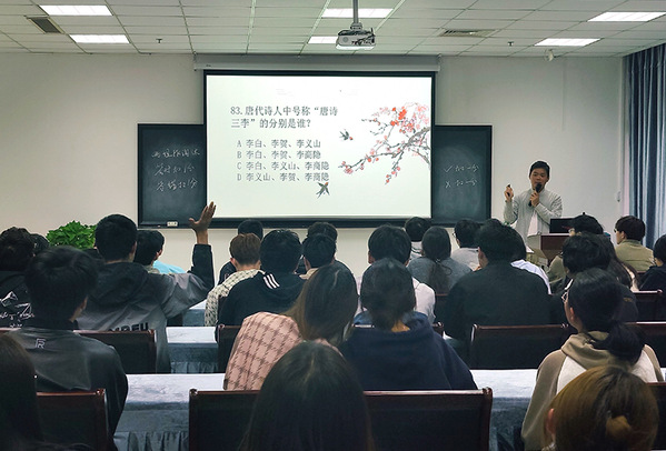 为提高大学生阅读素养,弘扬中华传统文化,提升校园文化氛围,4月17日,由bat365中文官方网站图书馆联合校团委主办,北京万物可知技术有限公司和墨竹读书协会承办的第一届古典文化知识挑战赛活动在图书馆开展。挑战赛以古典文化知识为题库,通过选择题轮流答题和填空题抢答展开。本次活动通过围绕古典文化知识展开竞答,激发了参赛选手对相关文化知识的思考,用挑战赛答题的这种形式为经典名篇、诗词佳作等注入新的时代内涵和生机活力,促进中华优秀传统文化传承。