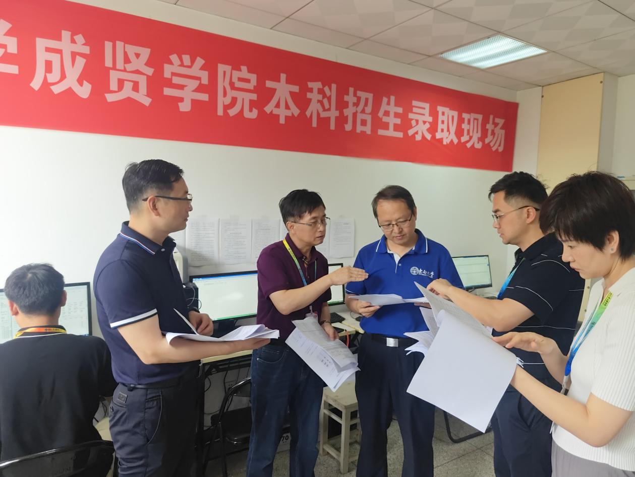 在招生录取现场,学校领导认真听取了招生办公室负责人关于宣传咨询、投档情况、录检审核等方面的汇报,询问了我校已投档省份生源情况及录取进程。