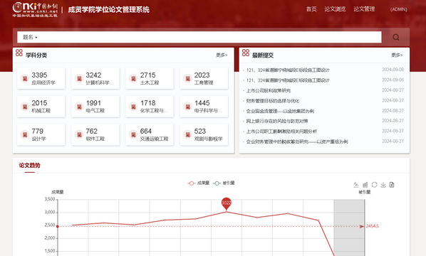 该数据库具有论文提交、页面展示、智能检索、在线阅读及统计分析功能,支持图书情报领域中常用的DC(Dublin Core)元数据标准和中国学术期刊网络出版总库数据标准,可显示毕业设计(论文)成果与院系对应关系,确保成果的有效聚合,实现多途径检索成果、展示研学的目的。