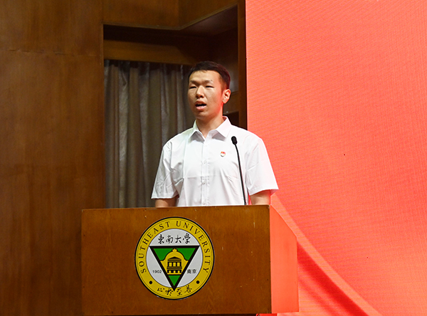 学生代表2021级计算机科学与技术2班的庄仁伟发言