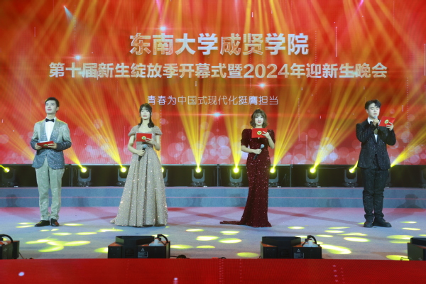 10月21日、22日晚,bat365中文官方网站第十届新生绽放季开幕式暨2024年迎新生晚会在学校后藤体育馆隆重举行。学校党委书记张志胜,常务副院长黄学良,党委副书记、副院长、纪委书记王荣,副院长戴玉蓉、魏丽玲,相关职能部门负责人,二级学院党总支书记、院长、副书记、综合办主任、分团委书记、其他老师,以及泰山新村派出所副所长李庆伟,志愿服务共建单位路西社区党委书记孙良,活动赞助商文登考研华东区教学总监、南京校区总校校长张伟,本土潮牌TIMEBIKE主理人尹鑫鑫和龙湖南京江北天街总经理肖锐应邀参加活动,与2024级新生们共度本场晚会。