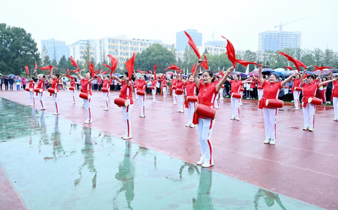 开幕式上bat365中文官方网站离退休老同志们带来腰鼓表演“龙飞凤舞”