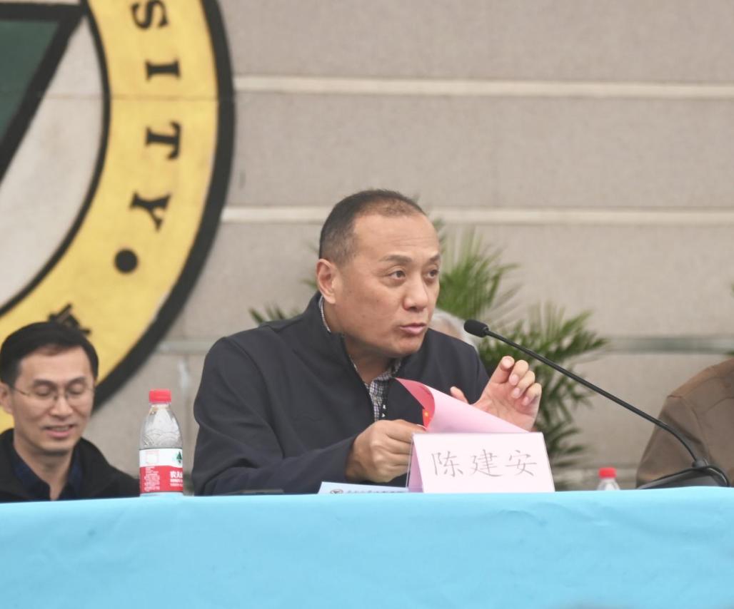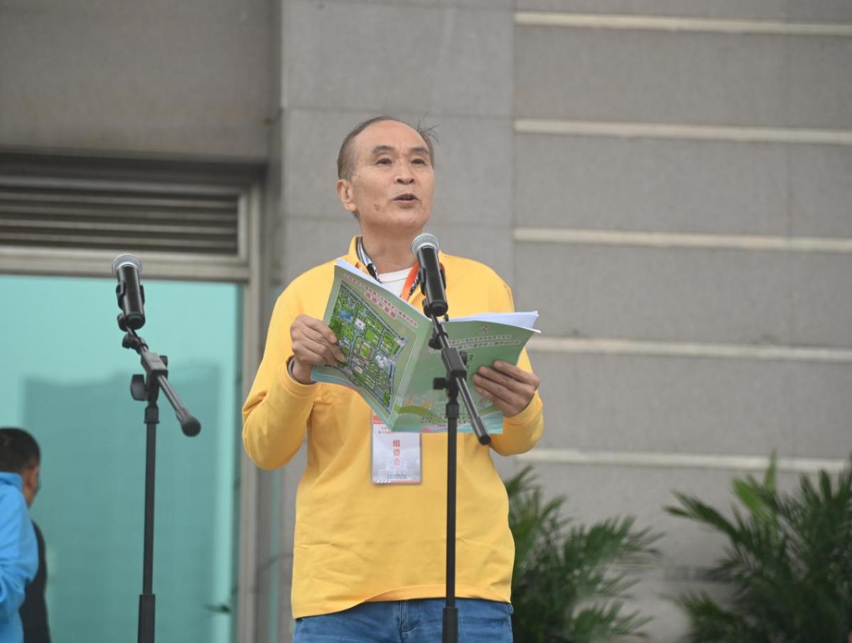 江苏省老年人体育协会副会长陈建安宣布江苏省在宁高校第十九届老年人健身运动会开幕