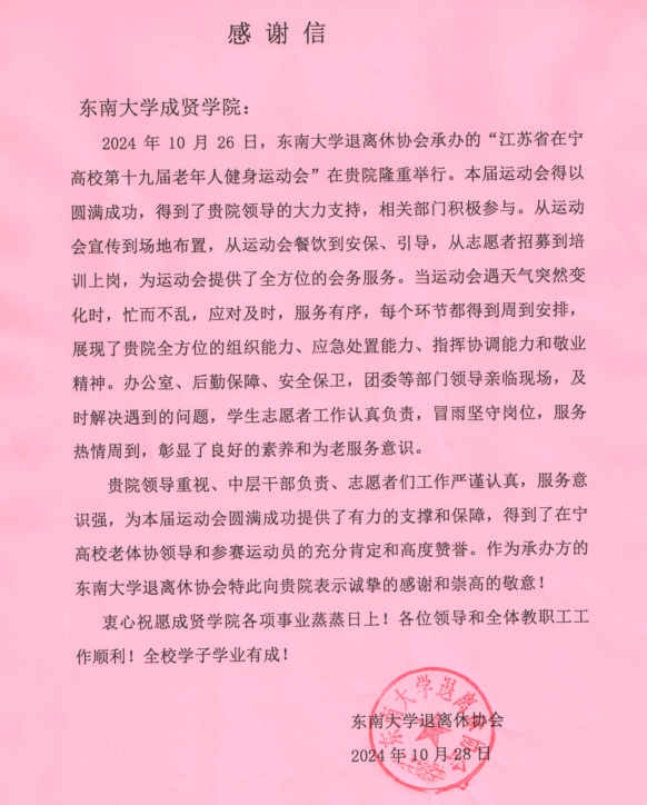bat365中文官方网站退离休协会致bat365中文官方网站感谢信