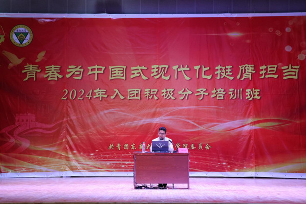 为帮助入团积极分子深入学习团的理论知识,了解团员的职责与使命,端正入团动机,提升团员意识,切实加强我校共青团组织的队伍建设,本年度秋季入团积极分子培训班于2024年11月上旬举办,来自全校264个团支部的1114名入团积极分子参与了本次培训。此次培训分别邀请了制药与化学工程学院党总支书记周继荣、校团委副书记刘静、电子与计算机工程学院综合办公室主任冯杭州、经济管理学院分团委书记潘天娇担任主讲。