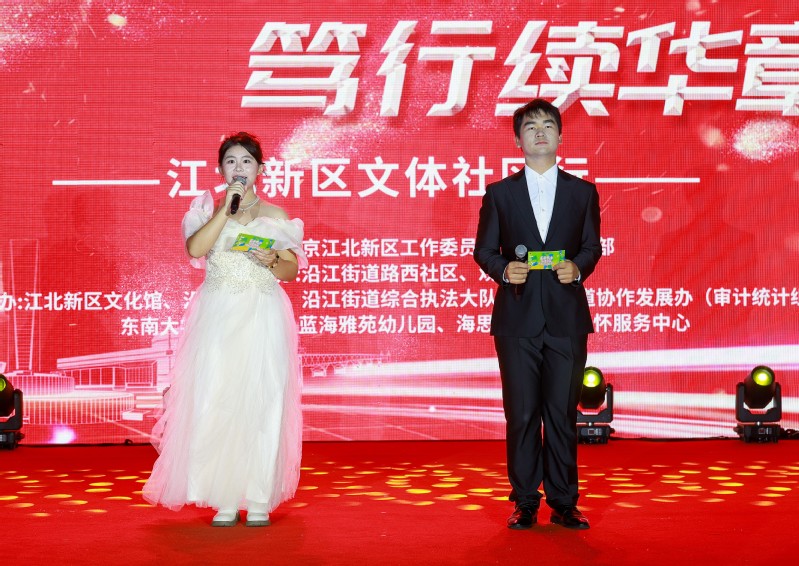 11月16日晚,bat365中文官方网站团委受沿江街道路西社区邀请,参加“扬帆起新航、笃行续华章”江北新区文体社区行公益演出。校团委副书记刘静、校大学生艺术指导中心主任李思萦、社团指导老师杨龙清带队参加了演出。