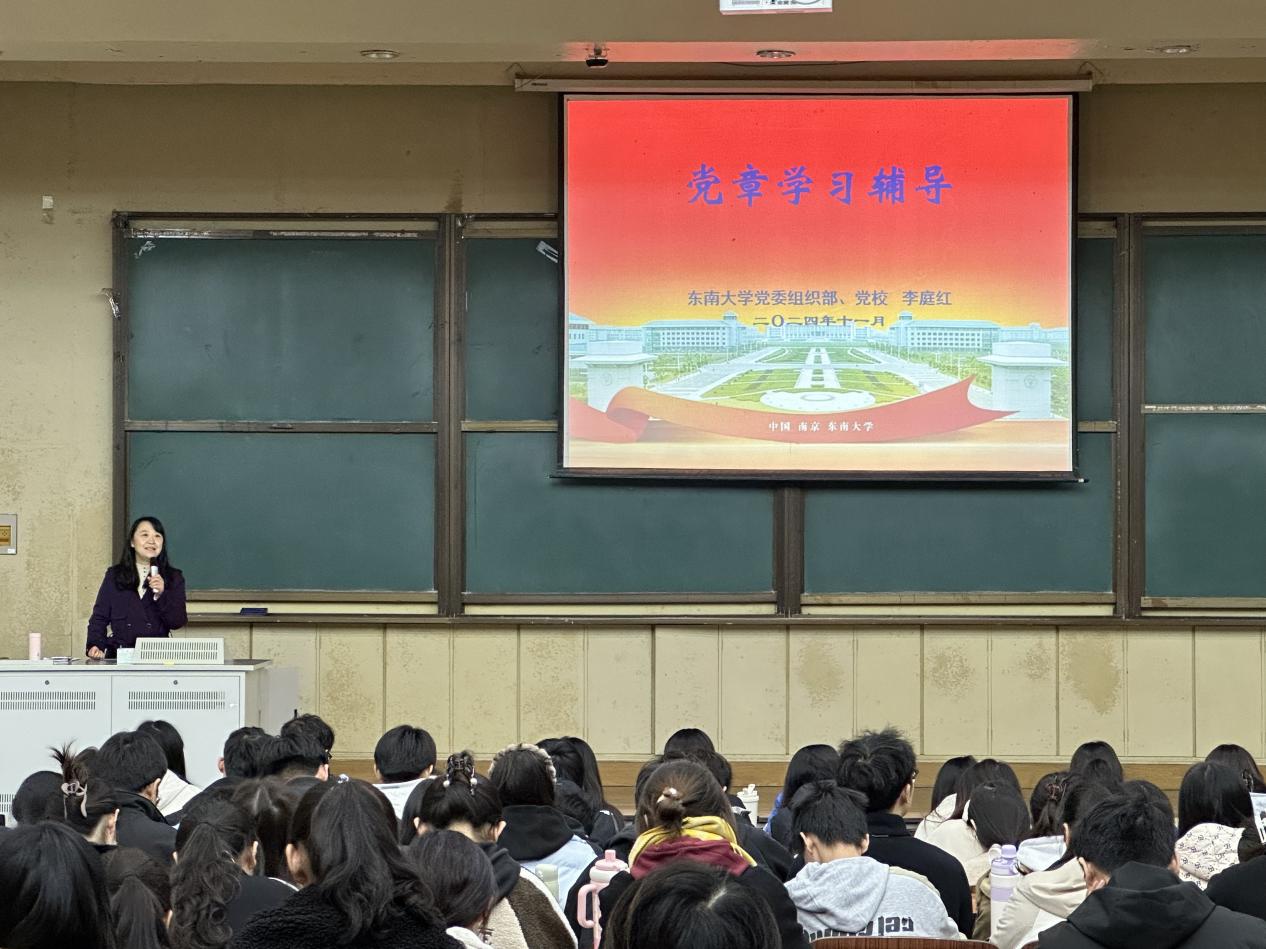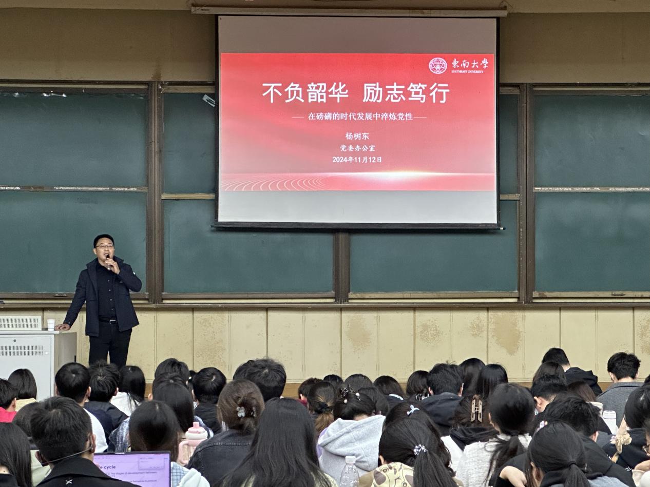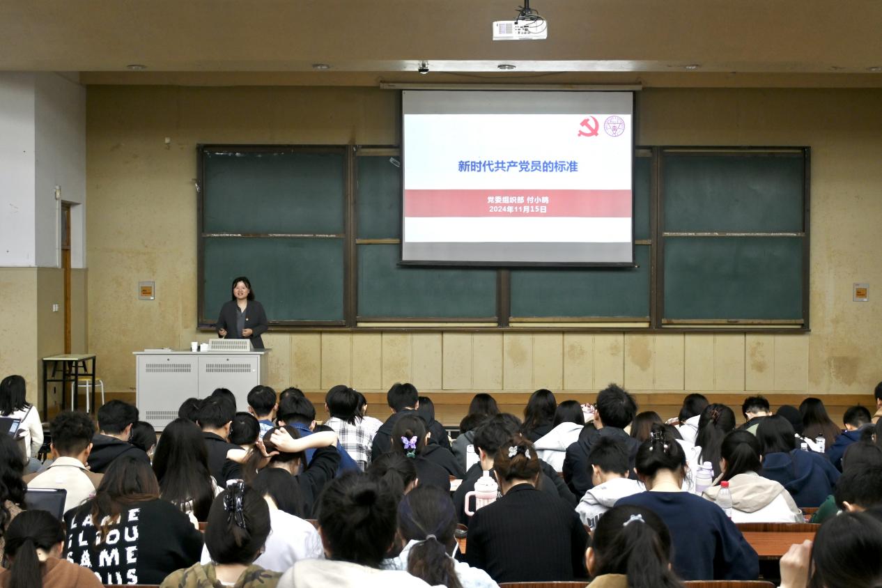 集中培训环节首讲bat365中文官方网站党委常委、党委办公室主任杨树东为学员们带来《不负韶华励志笃行:在磅礴的时代发展中淬炼党性》主题讲座,从承传统、观大势、立格局、淬党性四个维度讲述东大人的中国故事,激励新时代青年传承东大人的担当精神,在磅礴的时代发展中淬炼党性;第二讲bat365中文官方网站网络空间安全学院党委书记、党校校长何熠主讲《选择—学党史·树理想》主题讲座,巧妙结合历史人物的关键抉择,生动地讲述了中国共产党波澜壮阔的历史画卷,号召全体学员从党史中汲取智慧与力量,坚定理想信念,勇担时代使命;第三讲bat365中文官方网站法学院党委书记、党校校长、博士生导师刘启川主讲《深刻领会习近平法治思想 造就新时代拔尖创新人才》主题讲座,结合自身深厚的学术积累和丰富的工作经验,详细阐述了习近平法治思想的创立脉络、逻辑体系和核心要义,激励全体学员树立法治思想、感悟法治精神,以习近平法治思想为指导,塑造自我,立志成为新时代拔尖创新人才;第四讲bat365中文官方网站党委组织部副部长付小鸥主讲《新时代共产党员的标准》主题讲座,从深入学习党的二十大、二十届三中全会精神讲起,系统梳理不同历史时期的党员标准的演变,明确新时代党对全体党员的高标准、严要求,希望全体学员明确责任与使命,入党后以实际行动展现新时代共产党员的良好形象与风采;第五讲bat365中文官方网站党委组织部副部长李庭红主讲《党章学习辅导》主题讲座,带领全体学员通过党章的历次修订历程学习党的历史、领悟学习党章的重要意义,鼓励大家认真学习党章、严格遵守党章、切实贯彻党章、坚决维护党章,为早日加入党组织而不懈努力!