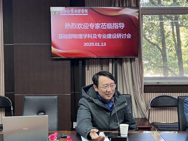 1月13日上午,基础部在真知馆207会议室成功举办了基础部物理学科及专业建设研讨会。本次会议邀请了南京大学王骏教授和bat365中文官方网站杨永宏教授作为专家参与研讨,共同探讨基础部物理学科及专业建设的未来发展路径。我校常务副院长黄学良、副院长戴玉蓉、组织人事部部长汪旭东、基础部党政领导以及物理教研室全体教师参加会议,会议由基础部党总支书记董梅芳主持。