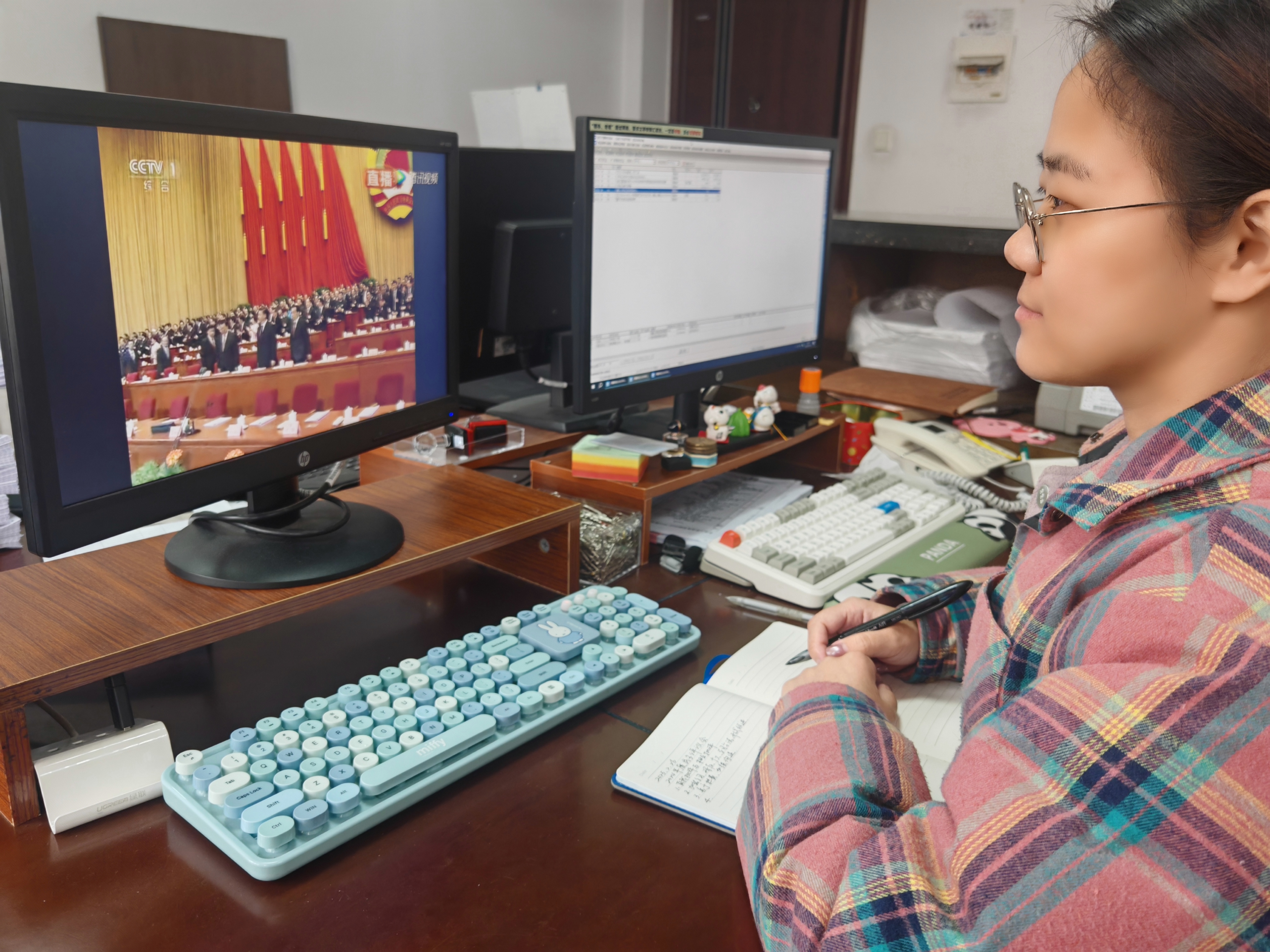春入华夏,时盛岁新。3月4日至5日,全国政协十四届三次会议、十四届全国人大三次会议分别在北京人民大会堂开幕。我校师生通过网络、电视、广播、新媒体等多种渠道时刻了解两会动态,关注两会热点,在全校上下掀起学习热潮。师生们深入学习两会精神,并结合自身工作学习实际谈感悟、谈信念、谈使命。
