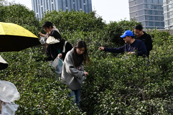 活动伊始,后勤管理处副处长丁秀山从学校茶树的品种、历史等方面给大家做了详细地介绍,并讲解了采茶标准与安全事项,强调“一芽一叶”的采摘要领。教职工们在翠绿茶垄间俯身采摘,形成一道生机盎然的风景线。