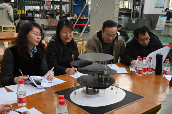 在比赛过程中,评委老师本着公开、公平、公正的原则,在模型设计、整体展示、细节处理、方案书说明和解说介绍等五个方面对各参赛团队进行了综合评分,并分析了参赛作品的力学性能和结构性能,指出了作品中存在的问题。参赛选手认真聆听评委老师的点评,就制作过程中出现的问题与评委老师进行了深入交流。