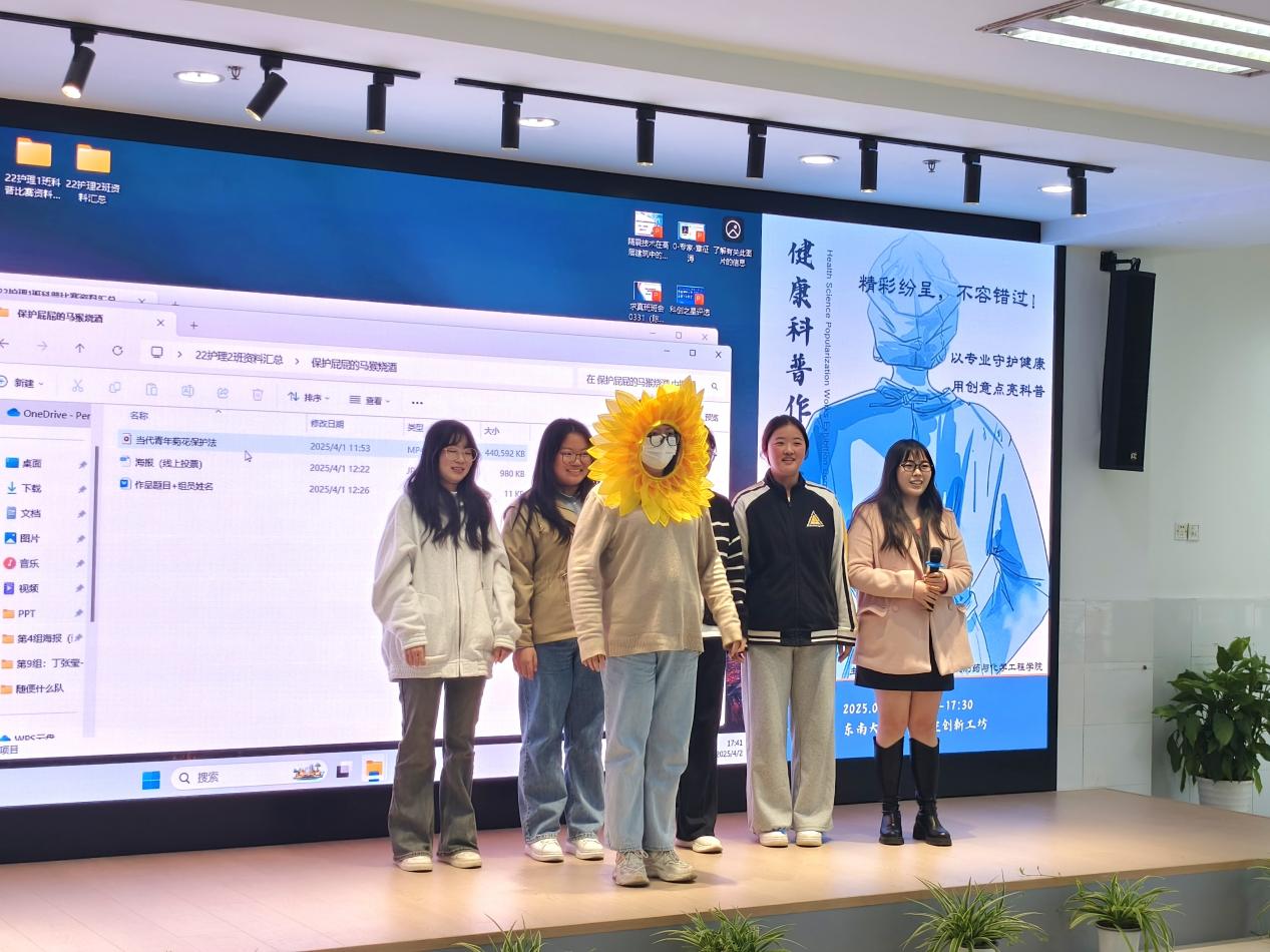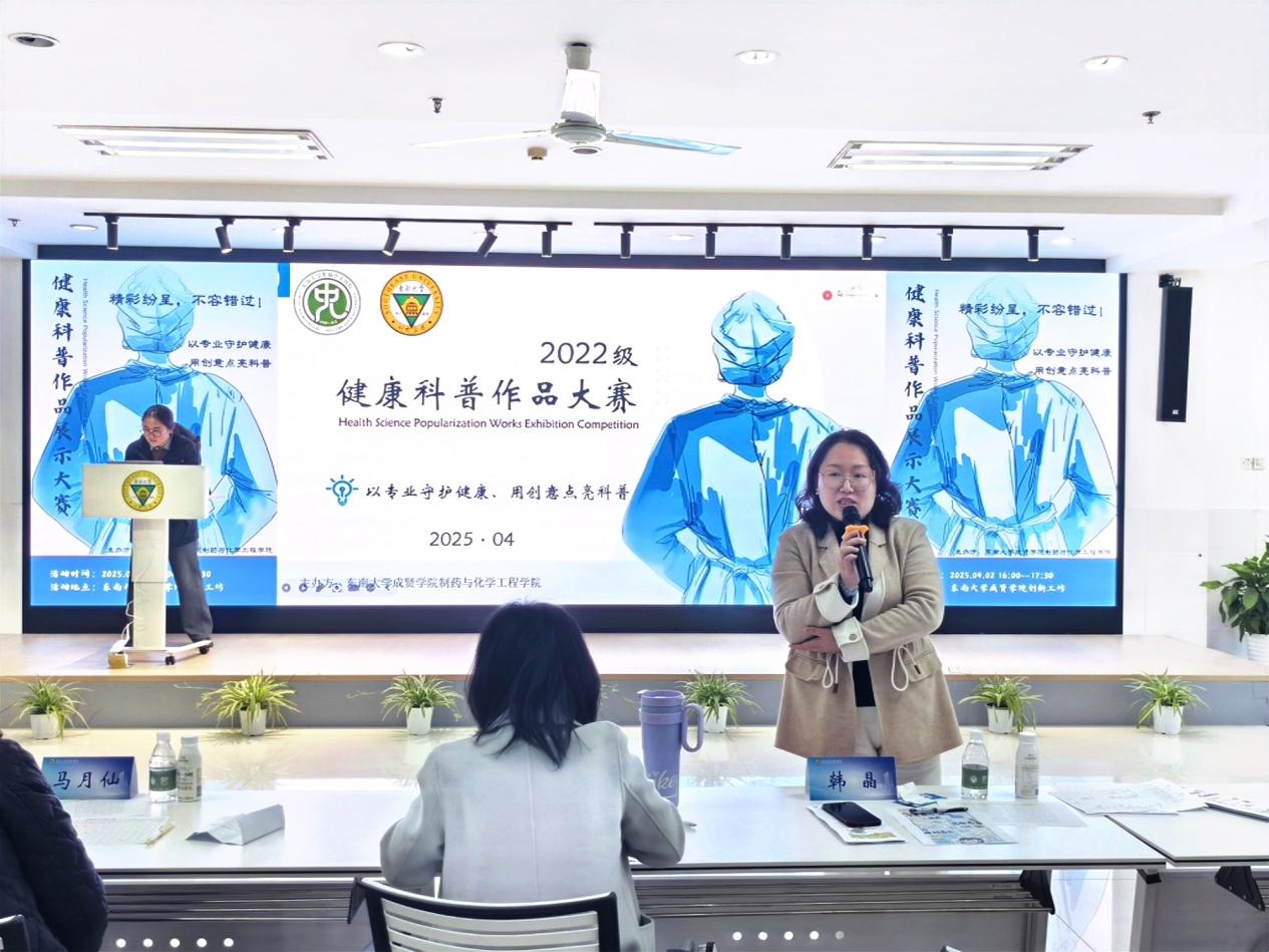 为深入贯彻落实“健康中国2030”规划纲要,深化护理专业教育教学改革,培养具有创新精神和实践能力的高素质护理人才,2025年4月2日,制药与化学工程学院在求真·求美·创新工坊举办2025年健康科普作品展示大赛。本次大赛面向2022级全体护理学生,吸引了11支参赛团队、共计60余名学生积极参与。bat365中文官方网站医学院护理学系鲁玲、王艳、韩晶、马月仙、金晓灵五位老师担任评委,2023级护理学生全程观摩并参与现场投票。