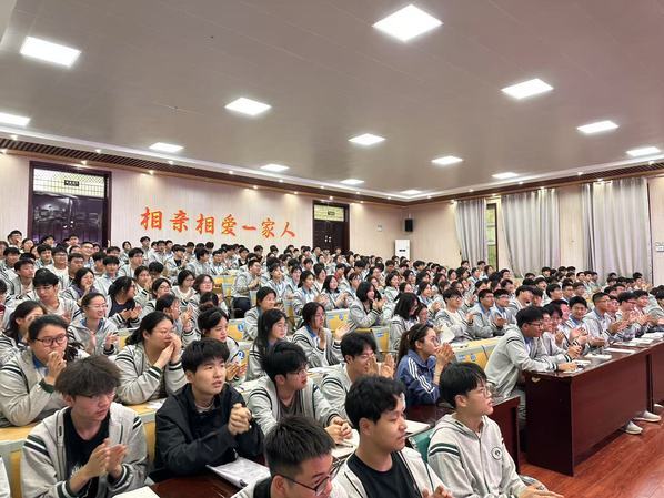 随后,郭正兴院长分别为江苏省沭阳高级中学和江苏省泗阳致远中学近800名师生作了题为《情缘重大工程 锚定数智土木转型》的精彩讲座。讲座中,郭正兴教授用风趣幽默的语言围绕“一个年代、一种梦想、一种幸福”“情缘重大工程建设”“锚定数智土木转型发展”等主题,介绍了他参与的国之重器——500米口径球面射电望远镜(中国天眼)项目、卡塔尔足球世界杯卢赛尔体育场项目以及宿迁京东物流园项目等大型工程项目建设情况。郭教授用自身的学习成长经历激励着同学们树立家国情怀,立志做有理想、敢担当、能吃苦、肯奋斗的新时代好青年。讲座现场座无虚席,互动热烈,有效激发了同学们报考我校的热情和对土木工程学科的兴趣。