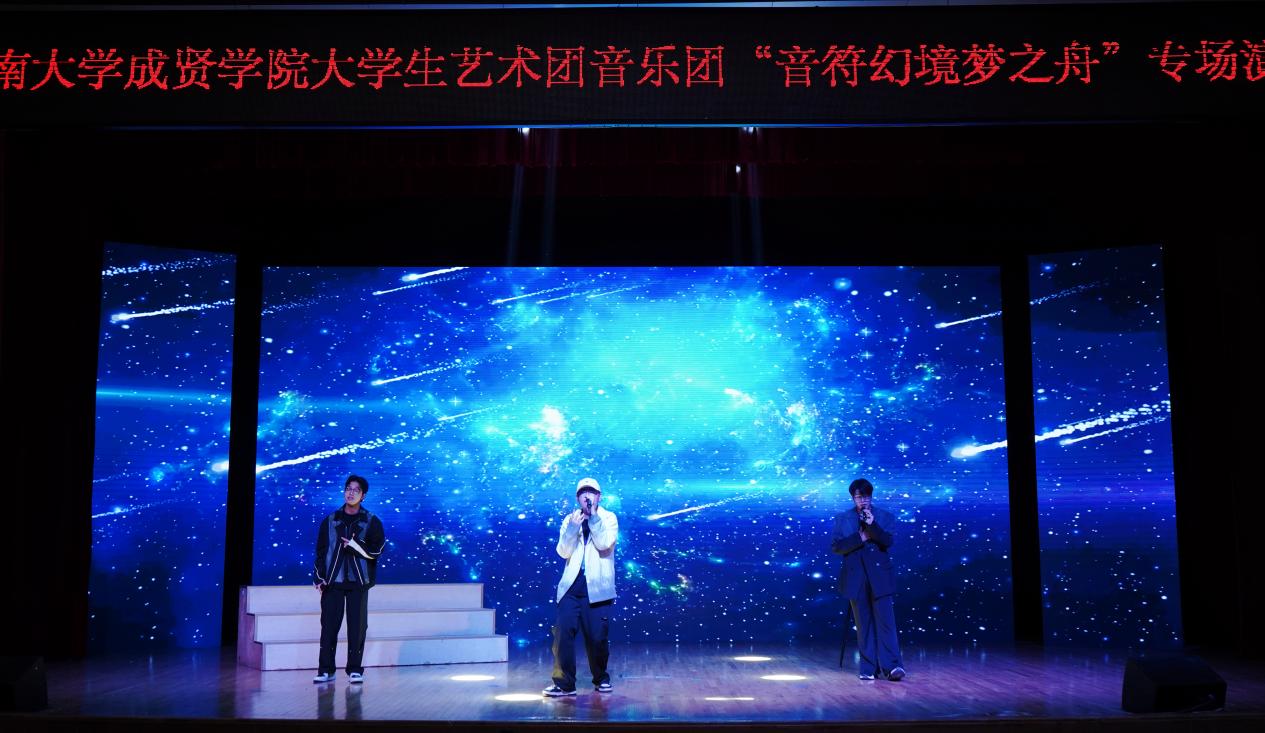 5月13日晚,由校团委主办、大学生艺术指导中心承办的 “音符幻境梦之舟” 音乐团专场演出在综合楼313报告厅举办。全校 650 余名师生共同观看了此次演出。