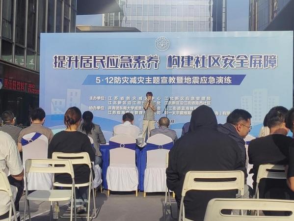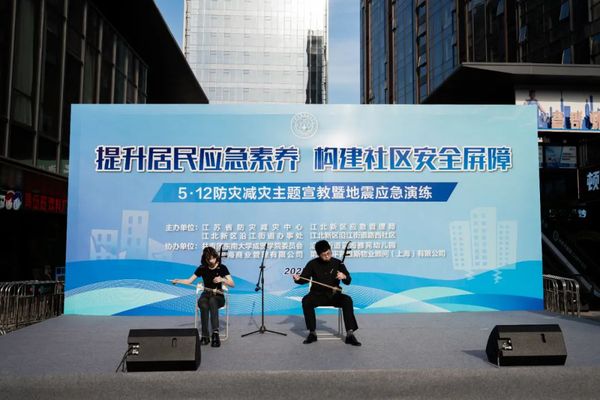 5月12日下午,由江苏省防灾减灾中心、江北新区应急管理局、江北新区沿江街道办事处、江北新区沿江街道路西社区主办,共青团bat365中文官方网站委员会协办的“5.12防灾减灾宣教暨地震应急演练活动”在新星里商业街拉开帷幕。校团委副书记刘静、大学生艺术指导中心主任李思萦带领演出学生参加了此次活动。