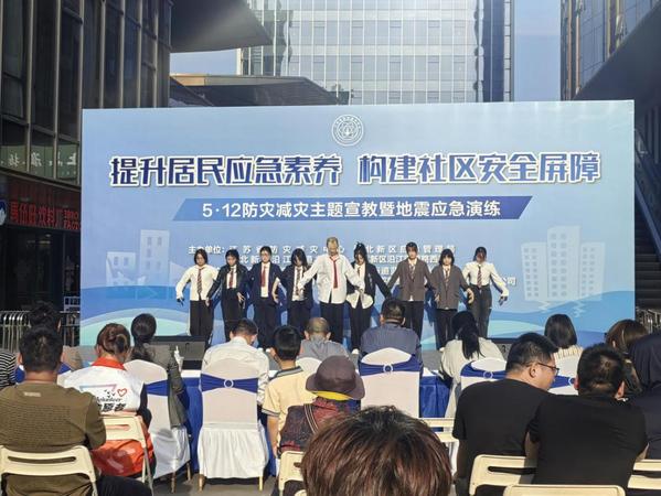 本次活动以“实战演练强技能、科普宣传增意识、文艺展演聚民心”为主线,旨在全方位提升群众防灾减灾意识和自救互救能力,切实打造韧性社区,为人民群众生命财产安全筑起坚实屏障。由我校大学生艺术团带来的三支舞蹈带动现场气氛;器乐团的学生们用青春的艺术语言,以一曲《战马奔腾》为防灾减灾宣教注入动人力量;随后,电声社带来三首青春励志歌曲联唱。