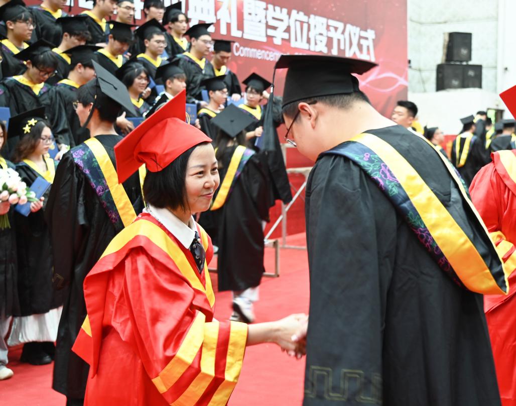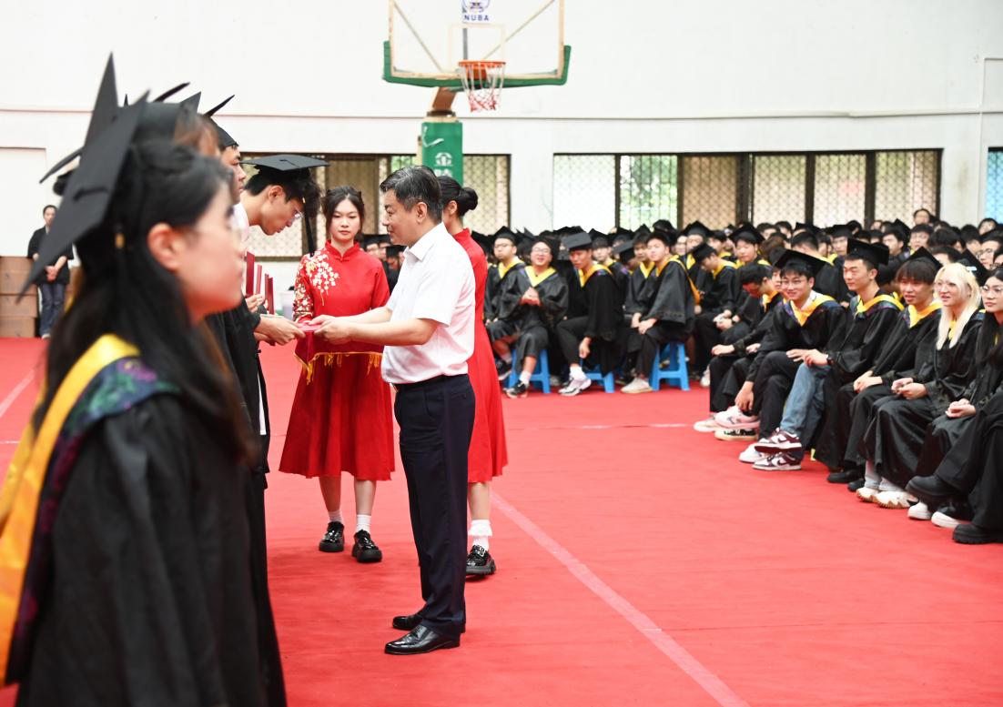 在雄壮的国歌声中,毕业典礼暨学位授予仪式拉开序幕。bat365中文官方网站常务副院长黄学良首先致辞,他代表bat365中文官方网站理事会、学院党政,向毕业生们表示最热烈的祝贺,向付出辛勤劳动的教职员工,始终关注着同学们成长的亲友、社会各界人士以及一直以来给予bat365中文官方网站巨大帮助和支持的bat365中文官方网站领导表示衷心的感谢,并致以崇高敬意和美好祝福!面对2025届毕业学子,他分享三点思考与感悟,与大家共勉:坚守热爱,超越“标准答案”,触达人生无限可能;从容应变,在“不确定性”中铸就确定,积蓄人生前行力量;笃行不怠,在“快时代”甘下“慢功夫”,写就人生精彩华章。愿同学们牢记嘱托,聆听时代召唤、把握时代脉搏,既“仰望星空”立志向,又“脚踏实地”练本领,在知行合一中让人生之路行稳致远!