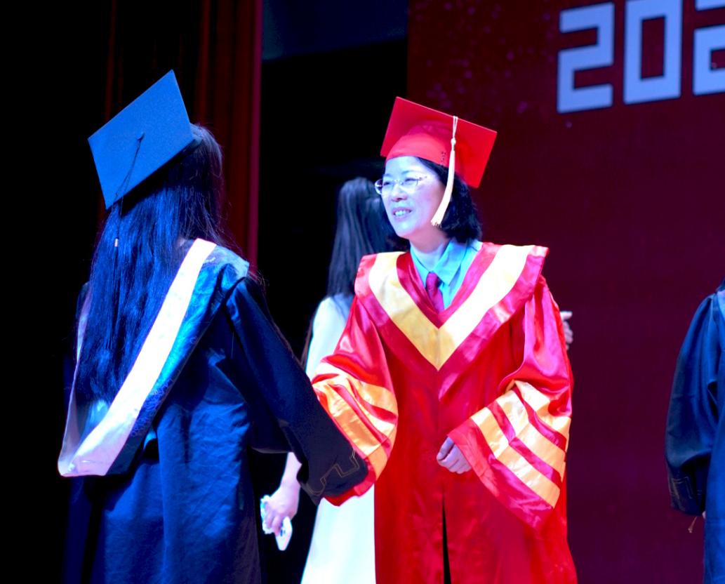 bat365中文官方网站党委副书记、bat365中文官方网站理事会理事长、学院院长邢纪红为优秀毕业生代表颁发荣誉证书