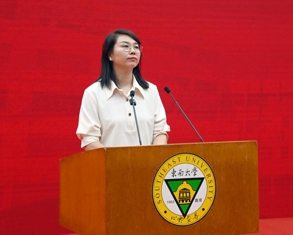 教师代表土木与交通工程学院刘丹副教授代表全体教师发言。她对在座各位新生提出真切期盼,希望同学们永葆好奇、拥抱枯燥、敢于质疑、注重实践、学会合作,用激情与奋斗书写属于青年学生的璀璨华章。