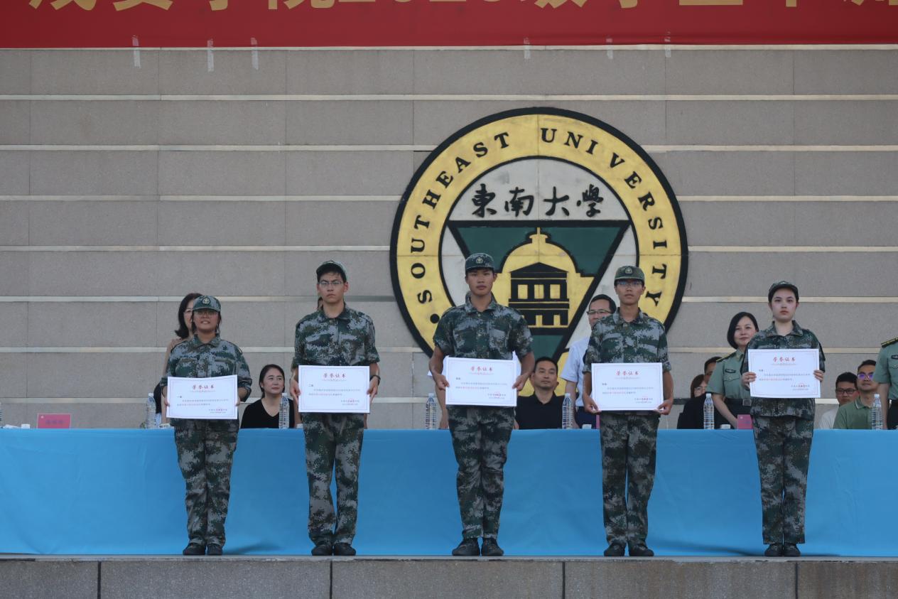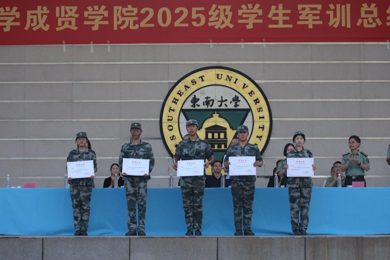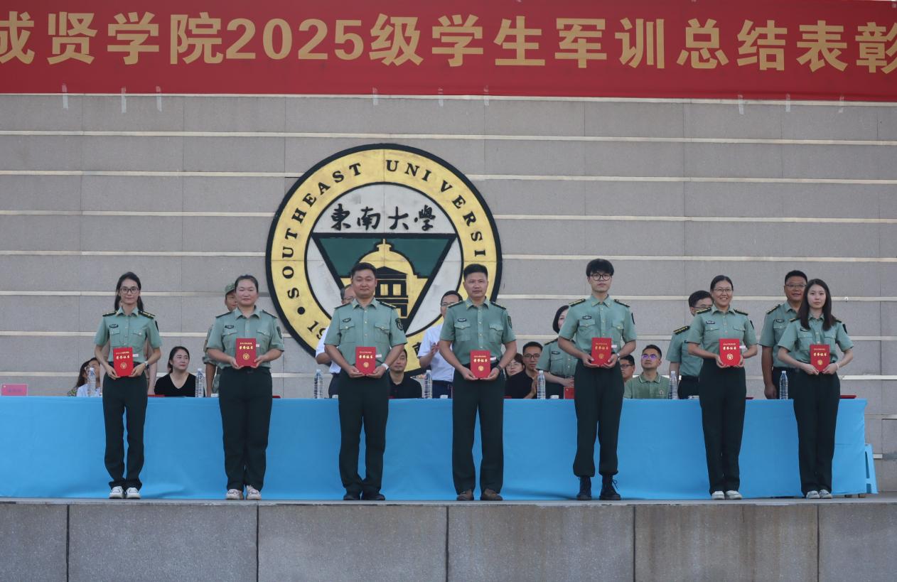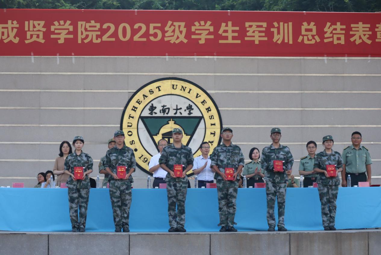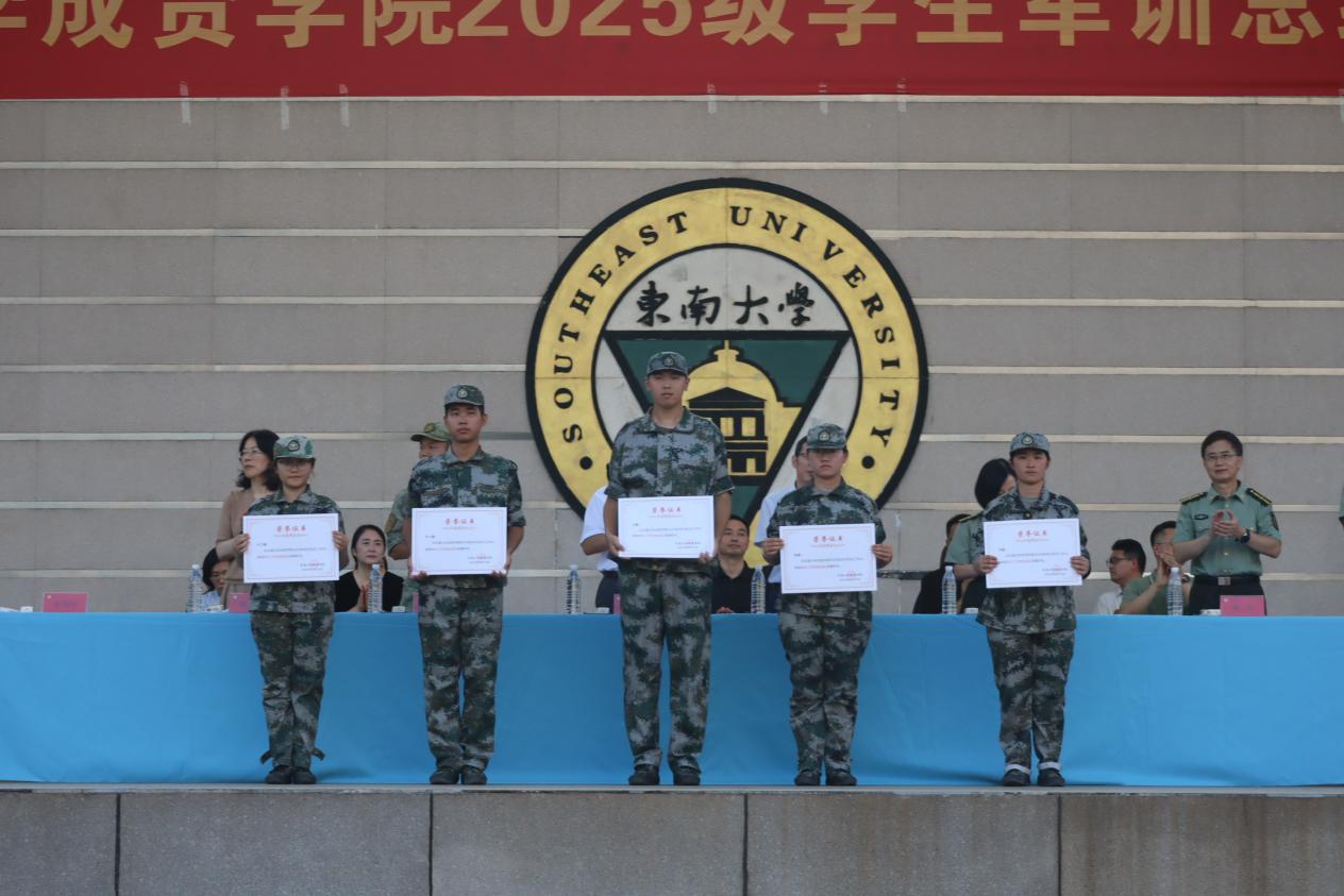 校常务副院长黄学良宣读了《bat365中文官方网站2025级学生军训团嘉奖令》,对军训中涌现的先进集体与个人予以表彰,并希望获奖单位和个人能够戒骄戒躁,谦虚谨慎,再接再厉,在各自的工作和学习岗位上脚踏实地、勤奋钻研、不懈拼搏,力争取得更大的成绩。他同时也希望其他单位与同志以他们为榜样,积极学习、见贤思齐,共同进步。随后,与会部队和学院领导共同为获奖代表颁奖。