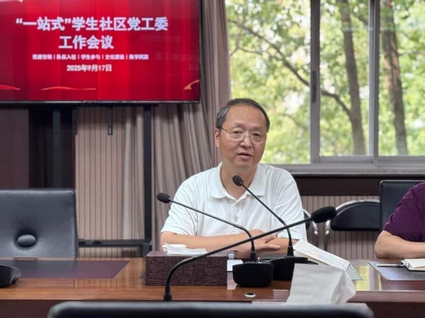 学生工作部副部长颜秉明在会议上传达学习省教育厅关于“一站式”学生社区建设情况报送工作的要求与进度安排以及《江苏省高校关工委融入“一站式”学生社区开展“五老五助力”行动工作方案》的相关通知精神。