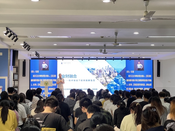 为帮助学生把握业财融合行业趋势,培养数字时代复合型人才,经济管理学院于9月25日晚举办“数字技术驱动下的业财融合新生态”专题讲座。本次讲座特邀南京天正会计师事务所联合创始人毛友俊担任主讲嘉宾。活动吸引了23级、24级财会专业150余名学生到场聆听。