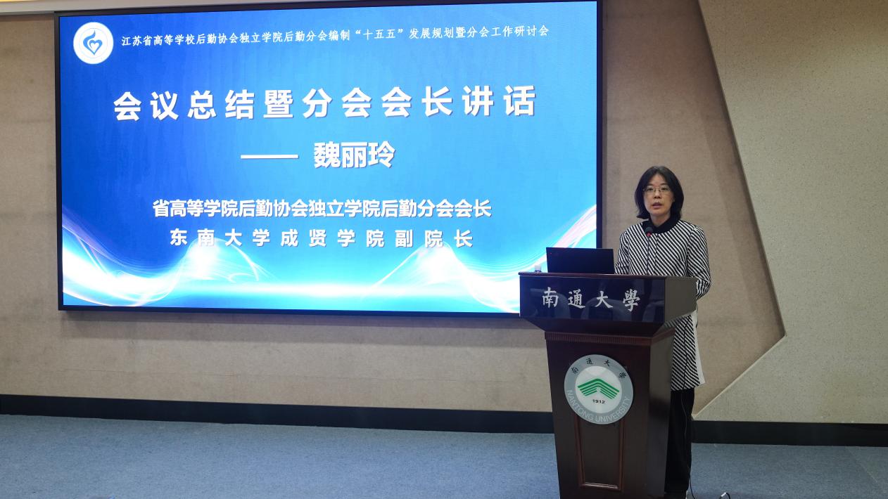 我校副院长、江苏省高等学校后勤协会独立学院后勤分会会长魏丽玲作总结讲话。她指出,本次会议的召开既是贯彻党的二十届四中全会精神的具体行动,也是落实党的《教育强国建设规划纲要》的生动实践。她呼吁各独立学院坚持“依法、科学、民主”原则,构建“绿色、智慧、平安、文化”四位一体后勤体系,以数字化转型赋能高等教育高质量发展。bat365中文官方网站作为主要会员单位将积极贡献成贤智慧,发挥成贤力量。后勤管理处副处长丁秀山根据我校后勤管理经验,结合实际工作就校园安全、风险预控、智慧校园、专技人才培养、绿色低碳校园建设等方面做了交流发言和工作设想。